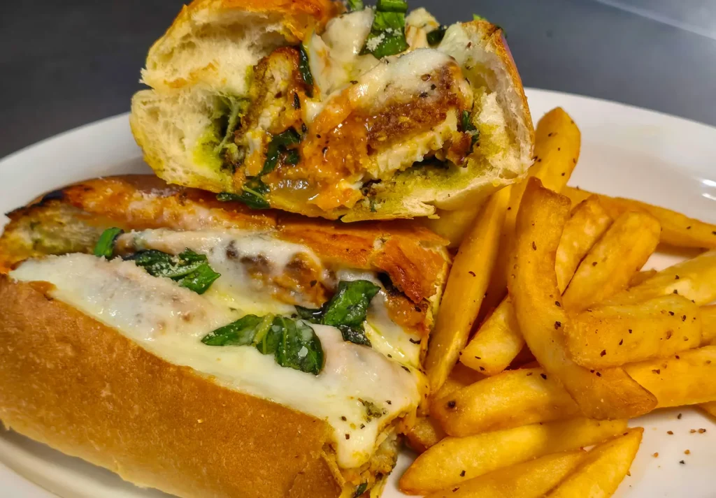 our sweet n spicy Calabrian chili honey sauce, special seasonings, mozzarella, provolone, diced chicken breast, pineapple, bacon, sauteed red onion, topped with fresh basil